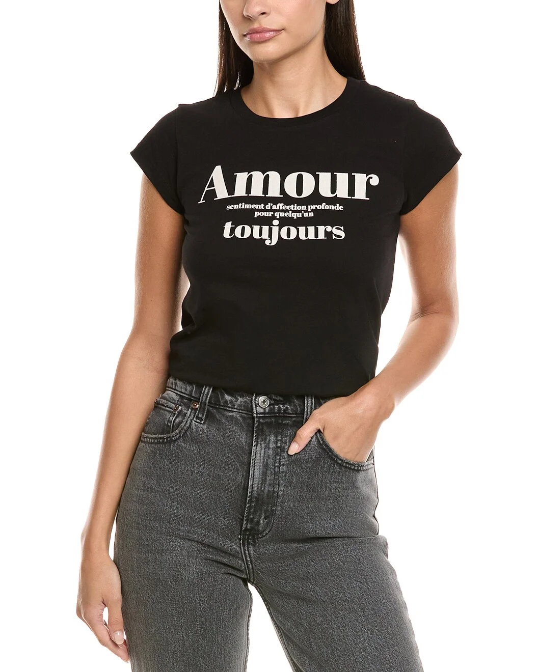 - About the brand: Zadig & Voltaire is a modern and edgy brand that plays with ambiguity in all areas of life. Based in Paris, the brand prides itself on individuality and self expression. Pulling inspiration from literary and art icons through the ages, Zadig & Voltaire embraces strength and inclusivity. - Skinny Amour T-Shirt in black with crewneck, and ribbed trim - Approximately 23in from shoulder to hem - Model is 5'10 and is wearing a size small. Measurements may vary slightly by size. - Slip-on styling - 100% cotton - Machine wash - Imported
