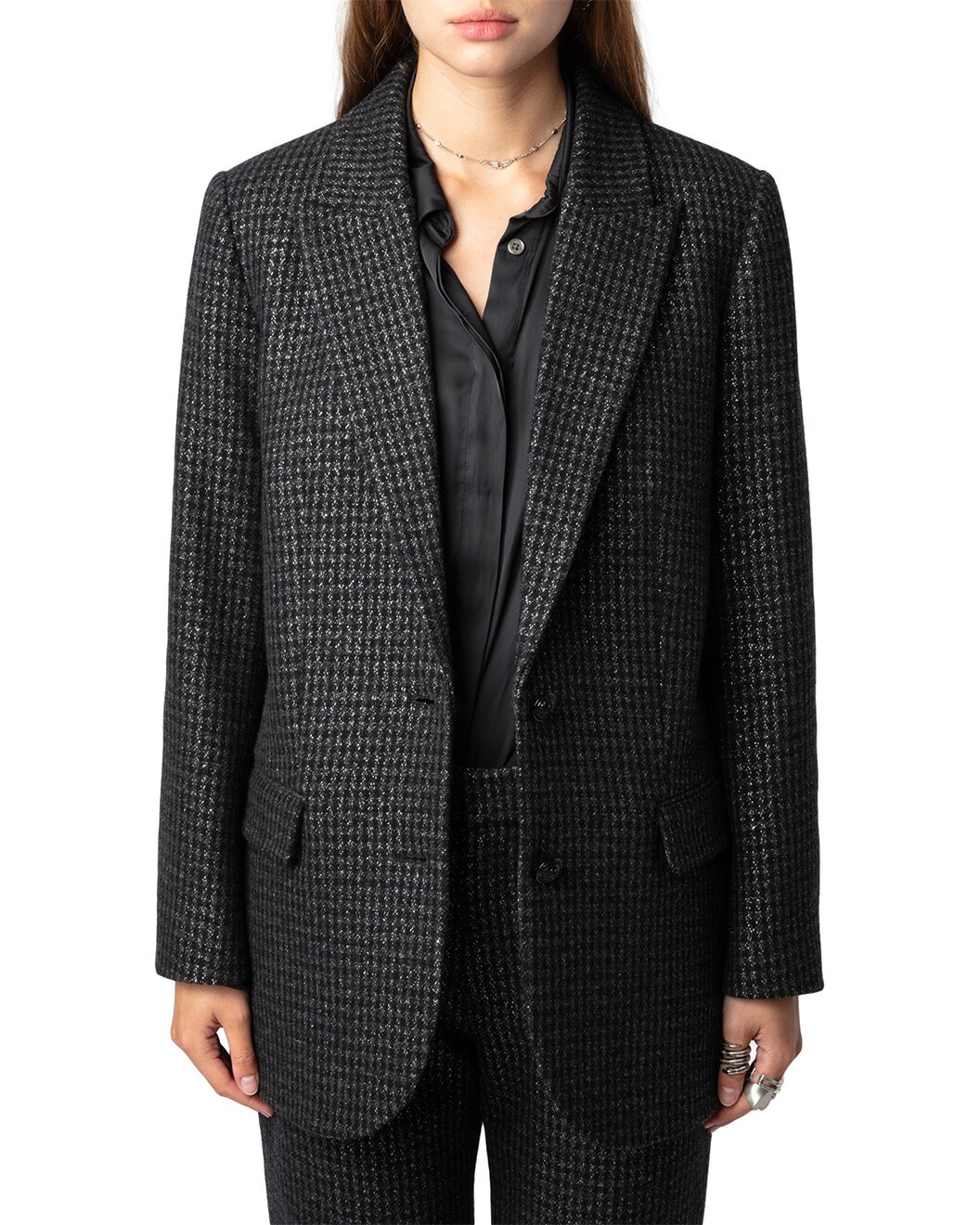 - About the brand: Zadig & Voltaire is a modern and edgy brand that plays with ambiguity in all areas of life. Based in Paris, the brand prides itself on individuality and self expression. Pulling inspiration from literary and art icons through the ages, Zadig & Voltaire embraces strength and inclusivity. - Blazer in noir - 70% wool 27%polyamide 3% polyester - Dry clean only - Imported