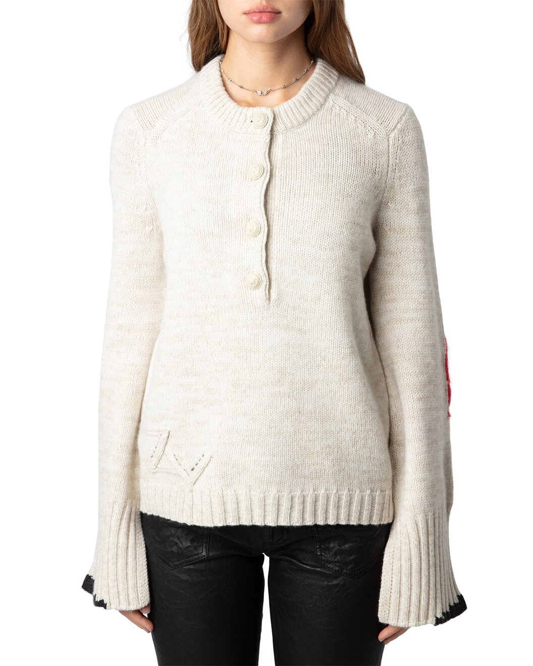- About the brand: Zadig & Voltaire is a modern and edgy brand that plays with ambiguity in all areas of life. Based in Paris, the brand prides itself on individuality and self expression. Pulling inspiration from literary and art icons through the ages, Zadig & Voltaire embraces strength and inclusivity. - Sweater in oatmeal - 58% wool 42% cashmere - Machine wash cold - Imported