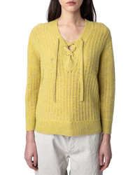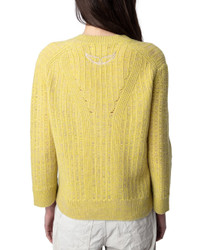 - About the brand: Zadig & Voltaire is a modern and edgy brand that plays with ambiguity in all areas of life. Based in Paris, the brand prides itself on individuality and self expression. Pulling inspiration from literary and art icons through the ages, Zadig & Voltaire embraces strength and inclusivity. - Sweater in jaune - Measurements taken from a size M and may vary slightly by size. - Slip-on styling - 100% merino wool - Machine wash cold - Imported