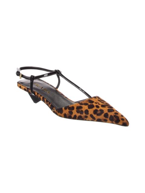 Prada Haircalf & Patent Pointy-Toe Slingback Pump