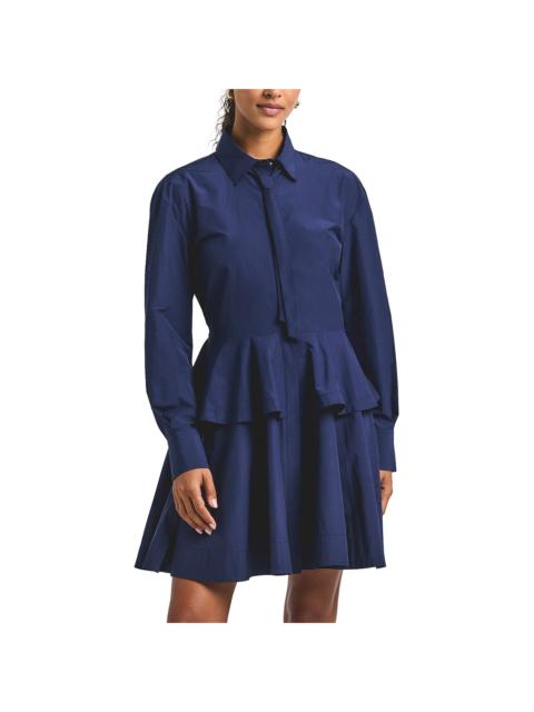 Derek Lam 10 Crosby Azuren Cotton Poly Peplum Shirt Dress With Tie