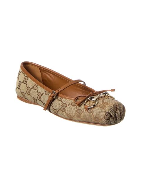 Gucci Horsebit GG Canvas & Leather Ballet Flat