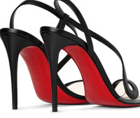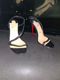 Christian Louboutin black leather, red bottoms, slingback, 4.5" heels.