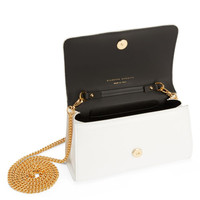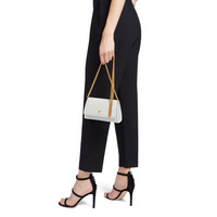 Product Details Clutch bag crafted from white patent-effect synthetic fabric, featuring the iconic golden metal 'Signature' hardware and chain shoulder strap, a magnetic closure on the front and leather and fabric inner lining with card slot and zipper pocket. - Patent-effect white synthetic fabric - Golden metal logo and hardware - Golden metal chain shoulder strap - Magnetic fastening - Leather and fabric inner lining with card slots and zipper pocket - Measurements: 180 mm x 110 mm x 60 mm - Made in Italy ORIGIN: ITALY COLOR: WHITE
