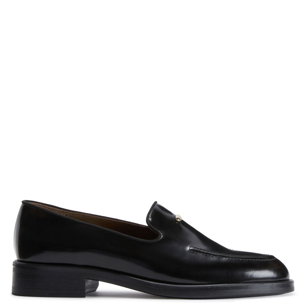 Product Details Grosgrain-trimmed loafers in glossy-finish leather with metal stitch detail and rubber sole. - Black glossy-finish leather with black fabric trim - Light gold-colored metal detail - Heel height: 20 mm - Black rubber sole with logo ORIGIN: ITALY COLOR: BLACK
