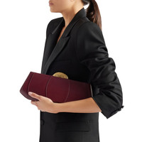 Product Details Clutch bag in leather with metal closure, chain shoulder strap and small inner pocket. - Upper: 100% lambskin - Lining: fabric ORIGIN: ITALY COLOR: BORDEAUX