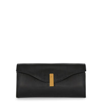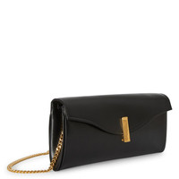 Product Details Clutch bag in leather with branded metal closure, chain shoulder strap, pocket and inner card slots. - Black leather - Branded golden metal closure - Golden metal chain shoulder strap - Leather and fabric interior with card slots and pocket - Size: 230 mm x 120 mm x 30 mm ORIGIN: ITALY COLOR: BLACK