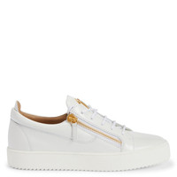 Product Details These low-top sneakers, crafted from glossy white leather with matching cotton laces, feature a golden rubberised 'Signature' detail on the tongue and matching side zippers on the upper. Matching rubber soles give the design a perfect finish. - Men's sneakers - Glossy white leather - Golden metal 'Signature' hardware - White cotton laces - Golden metal zippers - White rubber sole with logo - Made in Italy ORIGIN: ITALY COLOR: WHITE