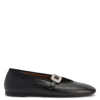 Product Details Mary Jane ballet flats with grosgrain edging and rhinestoned buckle on the strap. Black leather with black leather strap and black synthetic fabric edging Silver-coloured metal buckle with crystal-coloured rhinestones 05 mm heel Brown leather sole with logo Origin Italy Color Black More Less