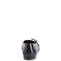 Product Details Grosgrain-trimmed Mary Jane ballerinas in leather with rhinestoned buckle on the strap. - Black leather with strap and black leather edge - Silver-coloured metal buckle and crystal-coloured rhinestones - 05 mm-high heel - Brown leather sole with logo ORIGIN: ITALY COLOR: BLACK