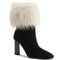 Product Details Suede ankle boots with contrasting fur cuff and block heel. - Upper: 80% goatskin suede, 20% - Lining: 80% wool - 20% NY - Insole: 80% wool - 20% NY - Sole: Rubber - Heel height: 90mm ORIGIN: ITALY COLOR: BLACK