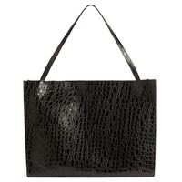 Product Details Large tote bag in crocodile-print leather with snap fastenings and an inside pocket. - Black crocodile-print leather - Handles in black crocodile-print leather - Embossed logo on the outer label - Gunmetal snap fastenings - Black fabric lining and leather pocket - Dimensions: 550 mm x 400 mm x 190 mm ORIGIN: ITALY COLOR: BLACK