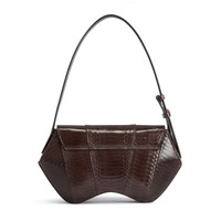 Product Details Compact shoulder bag in Elaphe Carinata snakeskin with hammered-effect metal closure, rigid reptile skin shoulder strap and inner pocket. - Material: 100% elaphe carinata reptile leather - Lining: Fabric ORIGIN: ITALY COLOR: BROWN