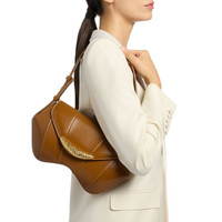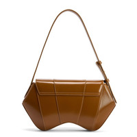 Product Details Compact leather shoulder bag with hammered-effect metal closure, rigid leather shoulder strap and internal pocket. - ivory leather - accessory golden metal closure - leather - shoulder strap - inside pocket ORIGIN: ITALY COLOR: LIGHT_BROWN