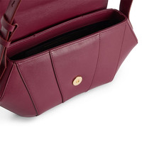 Product Details Compact leather shoulder bag with hammered-effect metal closure, rigid leather shoulder strap and inner pocket. - Burgundy leather - Gold-colored metal closure accessory - Burgundy leather shoulder strap - Leather inner pocket and fabric lining - Size: 290 mm x 370 mm x 100 mm ORIGIN: ITALY COLOR: BORDEAUX