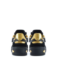 Product Details Low-top lace-up sneakers in leather and suede leather with two side zippers and rubber sole. - Womens sneakers - Black suede leather and leather and golden mirror-finish fabric - Black rubber-topped accessories, lace loop detail and golden heel detail - Black lacing - Gold-colored metal zipper detail - Black rubber sole with golden chrome detailing and logo ORIGIN: ITALY COLOR: BLACK