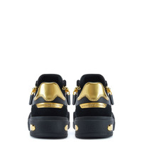 Product Details Low-top lace-up sneakers in leather and suede leather with two side zippers and rubber sole. - Mens sneakers - Black suede leather and leather and golden mirror-finish fabric - Black rubber-topped accessories, lace loop detail and golden heel detail - Black lacing - Gold-colored metal zipper detail - Black rubber sole with golden chrome detailing and logo ORIGIN: ITALY COLOR: BLACK