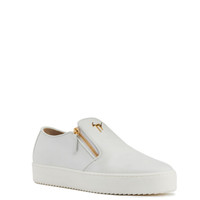 Product Details Slip-ons in leather with metal Signature detail, two side zippers and rubber sole. - Mens sneakers - White leather - Gold-colored metal Signature - Gold-colored metal zipper detail - White rubber sole with logo ORIGIN: ITALY COLOR: WHITE