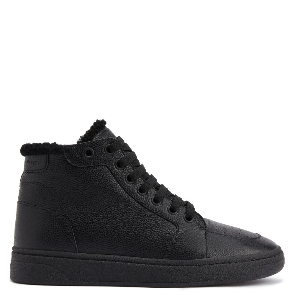 Product Details High-top lace-up sneakers in leather with fur interior and rubber sole. - Mens sneakers - Black leather - Black fur interior - Hot-stamped Signature on the label and hot-stamped logo lettering on the back of the upper - Black lacing and black rubber-effect metal eyelets - Black rubber sole with logo ORIGIN: ITALY COLOR: BLACK