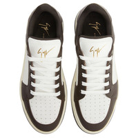 Product Details Low-top lace-up sneakers in leather and patent leather with two matching side zips and two-tone rubber sole. - Men's sneakers - White and brown patent leather - Hot-stamped golden Signature on the label - Golden logo lettering printed on the back of the upper - White cotton laces and brown rubber-topped eyelets - Off-white rubber sole, brown tread with logo ORIGIN: ITALY COLOR: BROWN