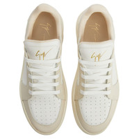 Product Details Low-top lace-up sneakers in leather and patent leather with rubber sole - Men's sneakers - Off-white leather and off-white patent leather - Hot-stamped golden Signature on the label - Golden logo lettering printed on the back of the upper - Off-white cotton laces and off-white rubber-topped eyelets - Off-white rubber sole, off-white tread with logo ORIGIN: ITALY COLOR: WHITE