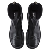 Product Details Combat boots in leather-effect stretch fabric with rear metal zipper and one-piece rubber sole. - Black leather-effect stretch fabric - Zipper and zipper pull in silver-colored metal on the back - Heel height: 50 mm. - Black rubber one-piece sole with logo ORIGIN: ITALY COLOR: BLACK