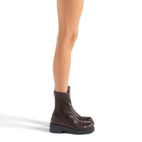 Product Details Combat boots in leather-effect stretch fabric with rear metal zipper and one-piece rubber sole. - Brown leather-effect stretch fabric - Zipper and zipper pull in silver-colored metal on the back - Heel height: 50 mm. - Black rubber one-piece sole with logo ORIGIN: ITALY COLOR: BROWN