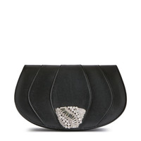Product Details Leather clutch bag with snap fastening, jewel accessory with pave-set crystals and inner pocket. - Material: 100% lambskin - Lining: lambskin ORIGIN: ITALY COLOR: BLACK