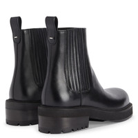 Product Details Leather Chelsea boots with leather-covered elastic insert on either side, metal detail and one-piece sole. - Black leather - Black elastic insert on either side - Silver-coloured metal accessory - Heel height: 50 mm - One-piece black rubber sole with logo ORIGIN: ITALY COLOR: BLACK