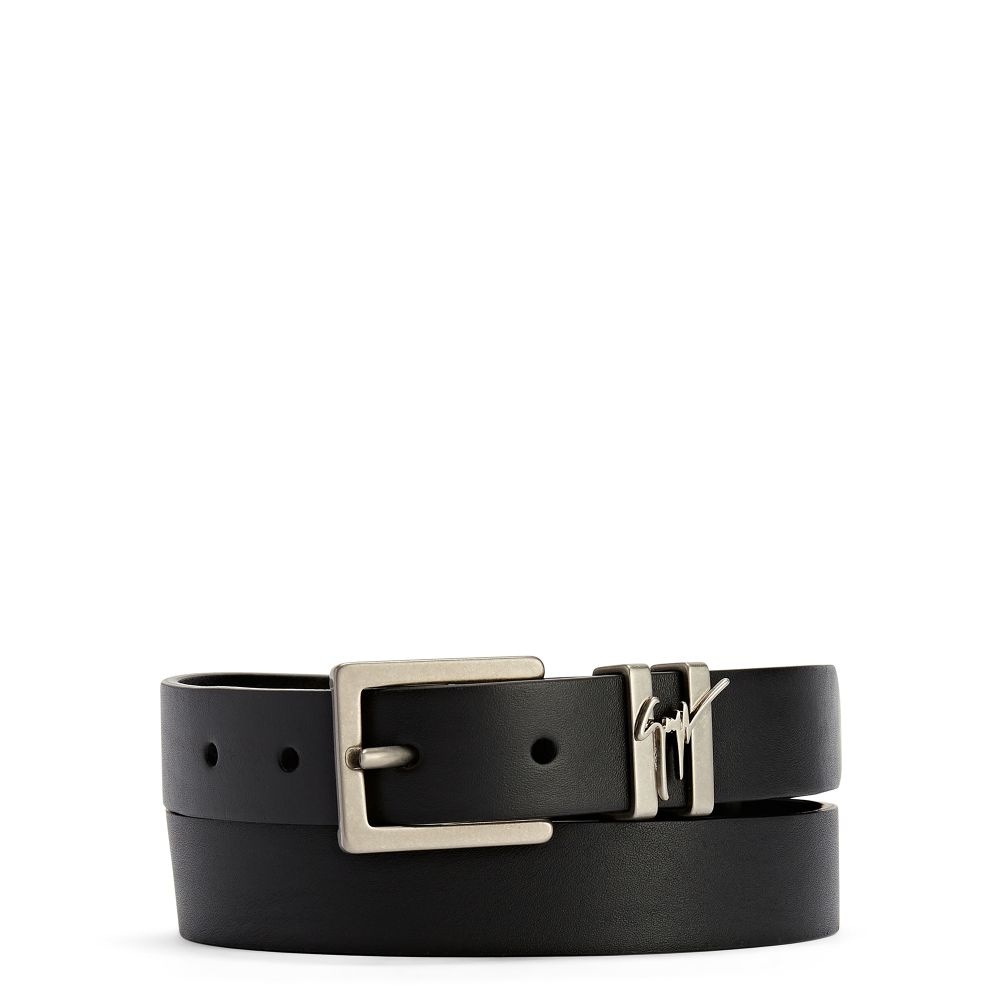 Product Details Leather belt with branded metal loop and maxi buckle. - Black leather - Pewter-grey metal branded loop and buckle - One size (adjustable): 130 cm x 2.5 cm - Due to the type of buckle, this belt can be worn on either the right- or left-hand side and can be considered a unisex accessory. ORIGIN: ITALY COLOR: BLACK