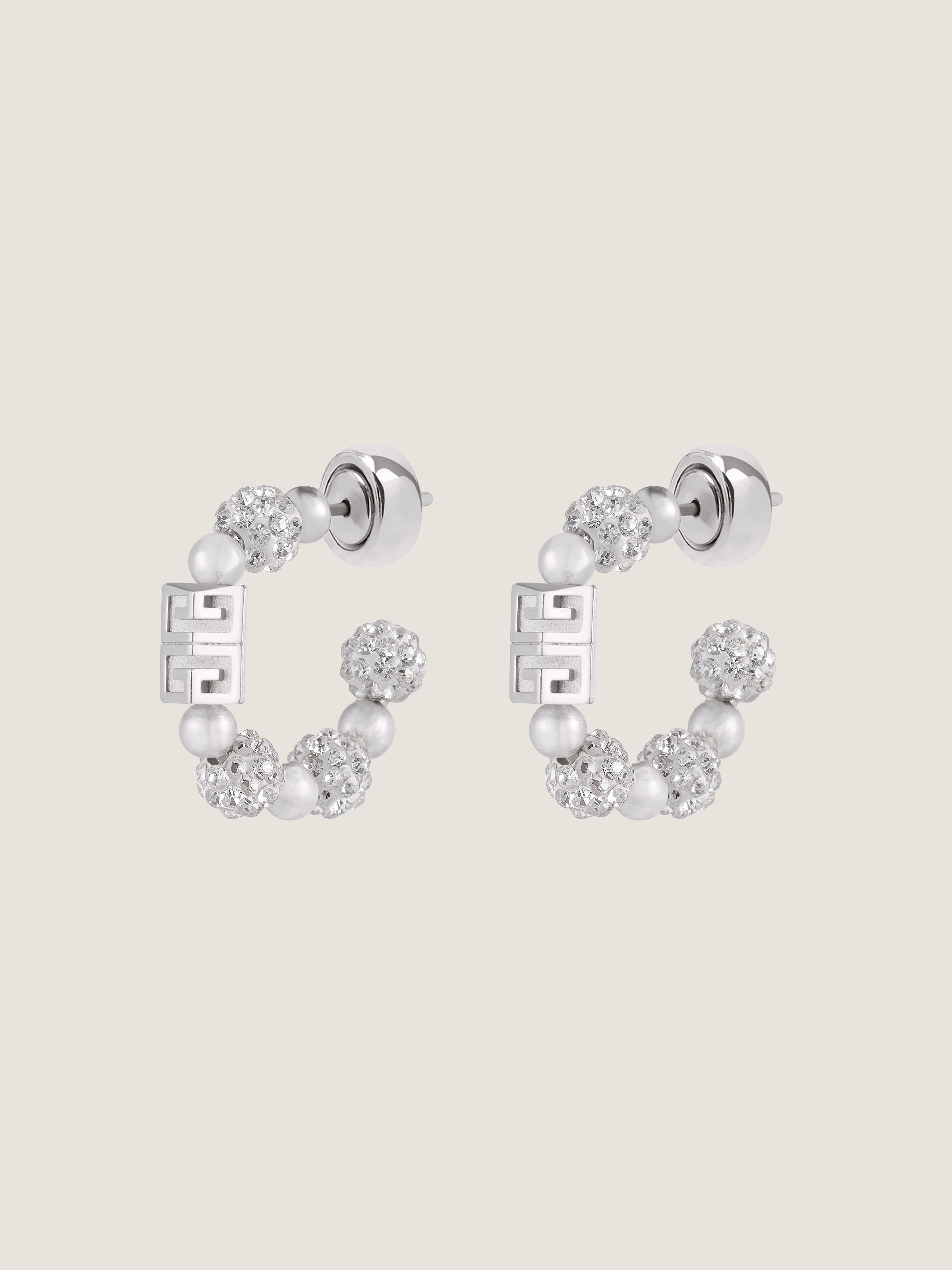- Hoop earrings in silvery-finish metal and crystals. - 4G line. - 4G emblem in silvery-finished polished and brushed metal and Swarovski crystals. - GIVENCHY signature engraved on the back. - Matching necklace, bracelet and ring sold separately.