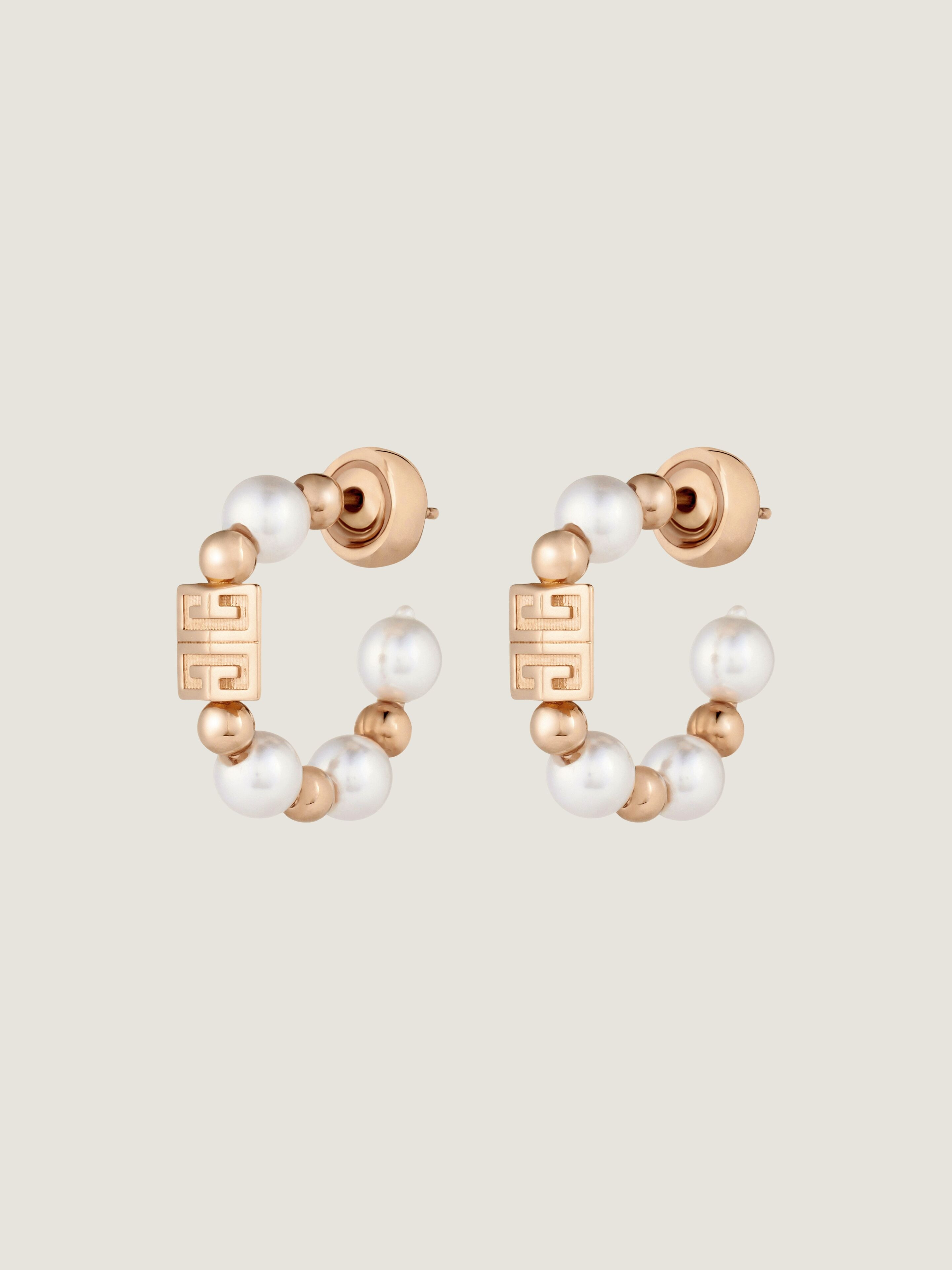 - Hoop earrings in pink golden-finish metal and pearls. - 4G line. - 4G emblem in pink golden-finished polished and brushed metal and resin pearls. - GIVENCHY signature engraved on the back. - Matching necklace, bracelet and ring sold separately.