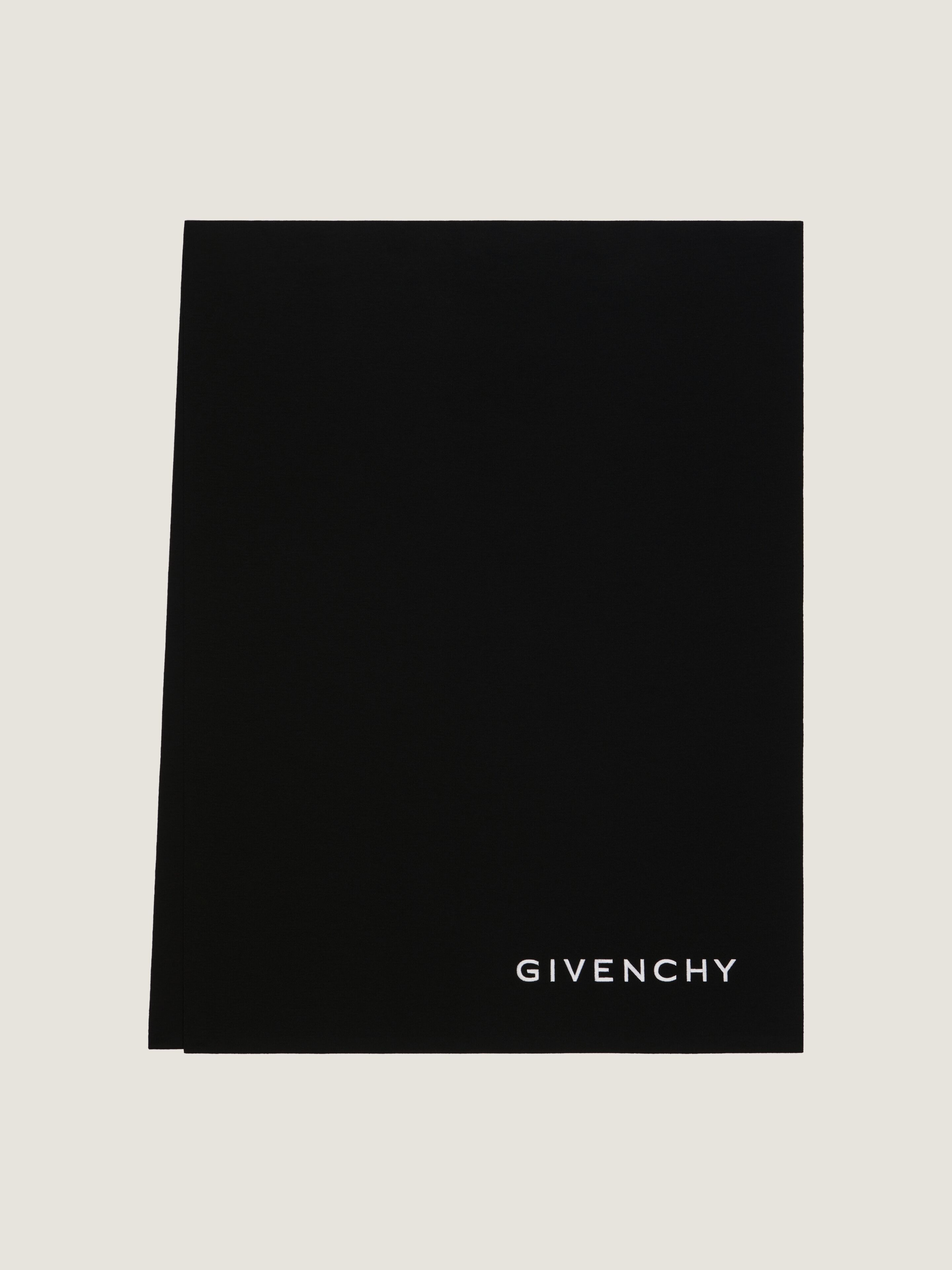 - Wide scarf in wool. - Contrasting 4G emblem on one edge. - Contrasting GIVENCHY signature on the other edge. - Fringed edge.