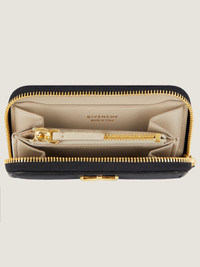 - Beveled wallet in Box calfskin leather. - 4G Liquid line. - Zipped closure with leather zipper pull. - Metal 4G Liquid emblem on the front. - Golden GIVENCHY signature on the back. - Golden-finish metal details. - Two main compartments. - One zipped center coin pocket. - Two card slots.