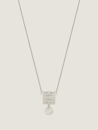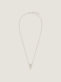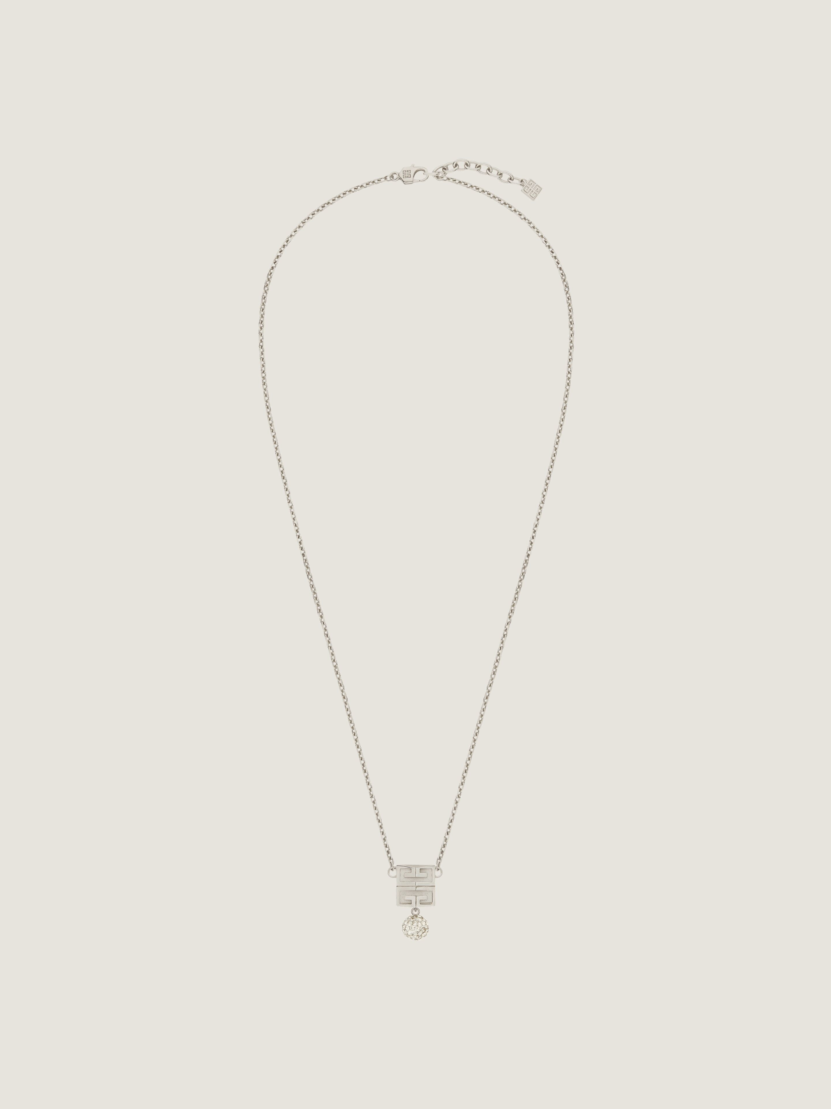 - Necklace in silvery-finish metal. - 4G line. - 4G pendant in silvery-finish polished and brushed metal. - Resin pearl paved with Swarovski crystals. - Adjustment chain with 4G plaque. - Adjustable length from 19.7 to 21.1 in. - Matching ring and bracelet sold separately.