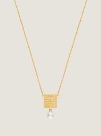 - Necklace in golden-finish metal. - 4G line. - 4G pendant in golden-finish polished and brushed metal with resin pearl. - Adjustment chain with 4G plaque. - Adjustable length from 19.7 to 21.1 in. - Matching ring and bracelet sold separately.