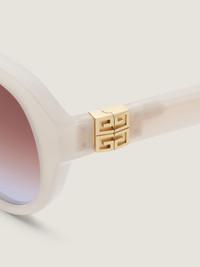 - Sunglasses in acetate. - 4G line. - Round shape. - Gradient lilac lenses. - 4G functional hinges in golden-finish metal. - 100% UVA/UVB protection. - Weight: 40g. - Model comes in a soft case.