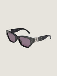 - Sunglasses in acetate with gradient crystals. - 4G line. - Cat-eye shape. - Smoke lenses. - 4G functional hinges in silvery-finish metal. - 100% UVA/UVB protection. - Weight: 58g. - Model comes in a soft case.