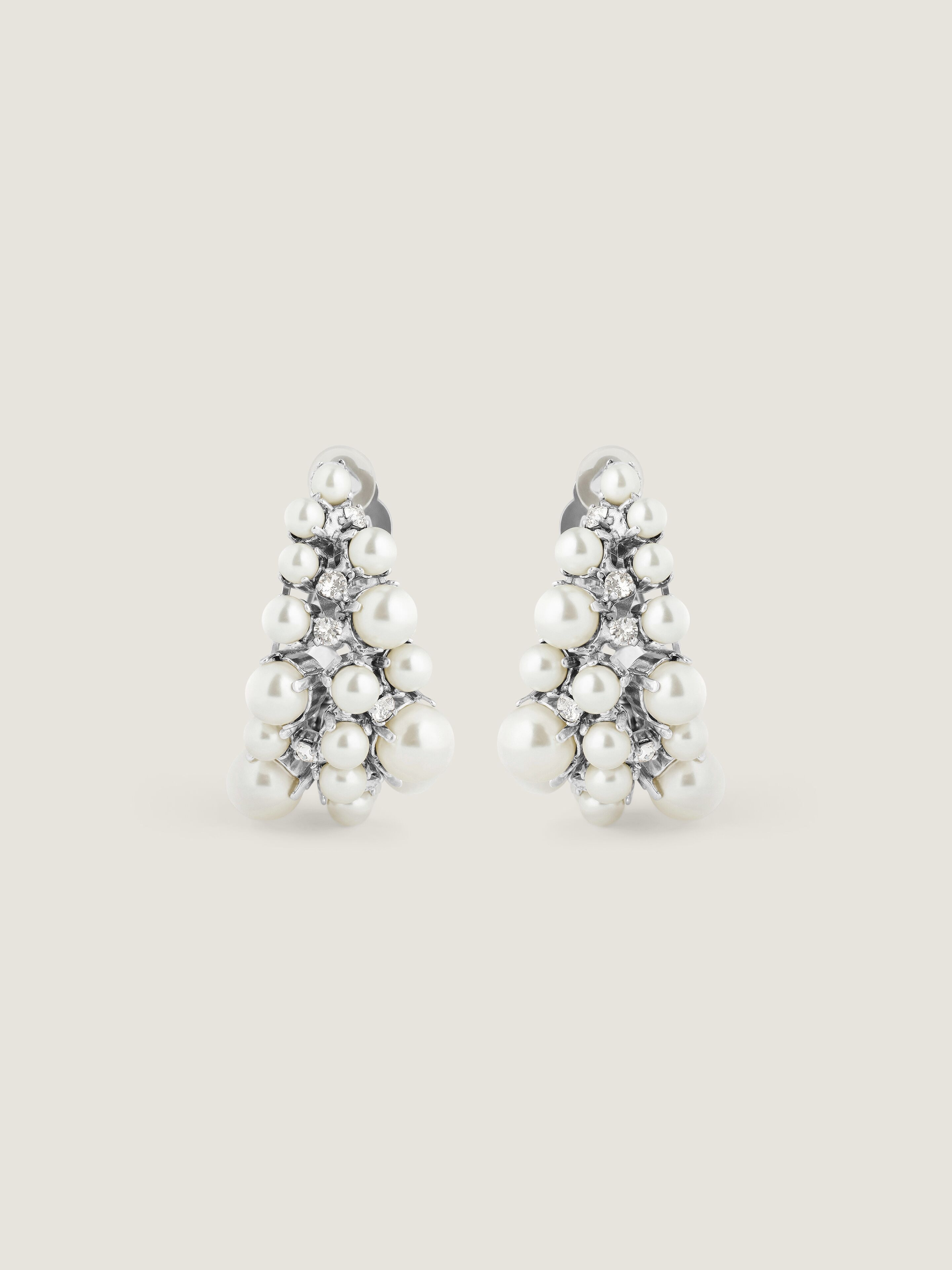 - Clip earrings in silvery-finish metal with hand-set crystals and pearls. - Crystal Pearl line. - GIVENCHY signature engraved on the back. - The clip of the earrings is inclined for a perfectly straight fit. - Sold by pair. - Matching earcuff sold separately.