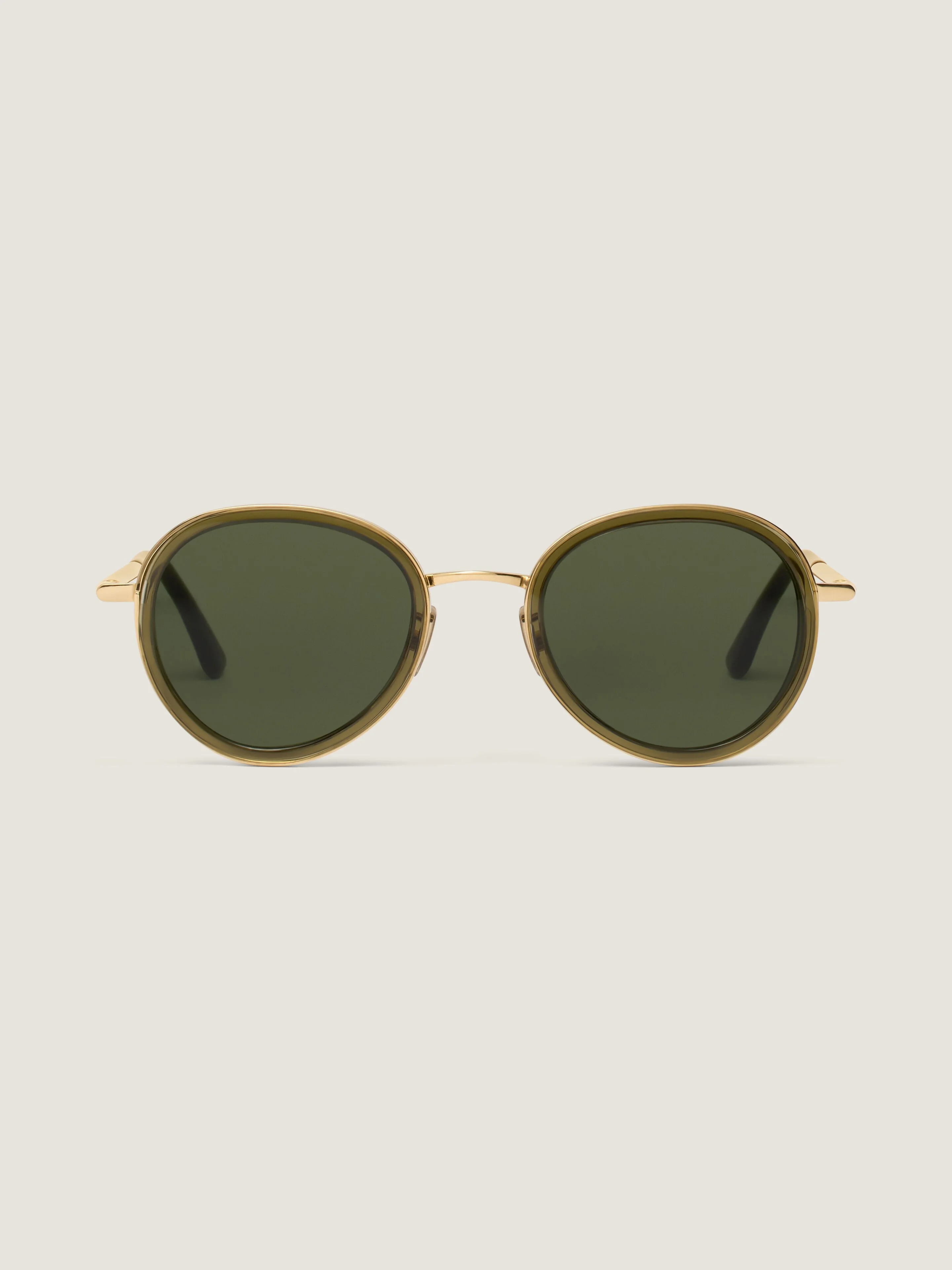 - Combi sunglasses in acetate and metal. - Day line. - Round shape. - Dark green lenses. - Adjustable nose pads. - GIVENCHY signature on the temples. - 100% UVA/UVB protection. - Weight : 35g. - Model comes in a case.
