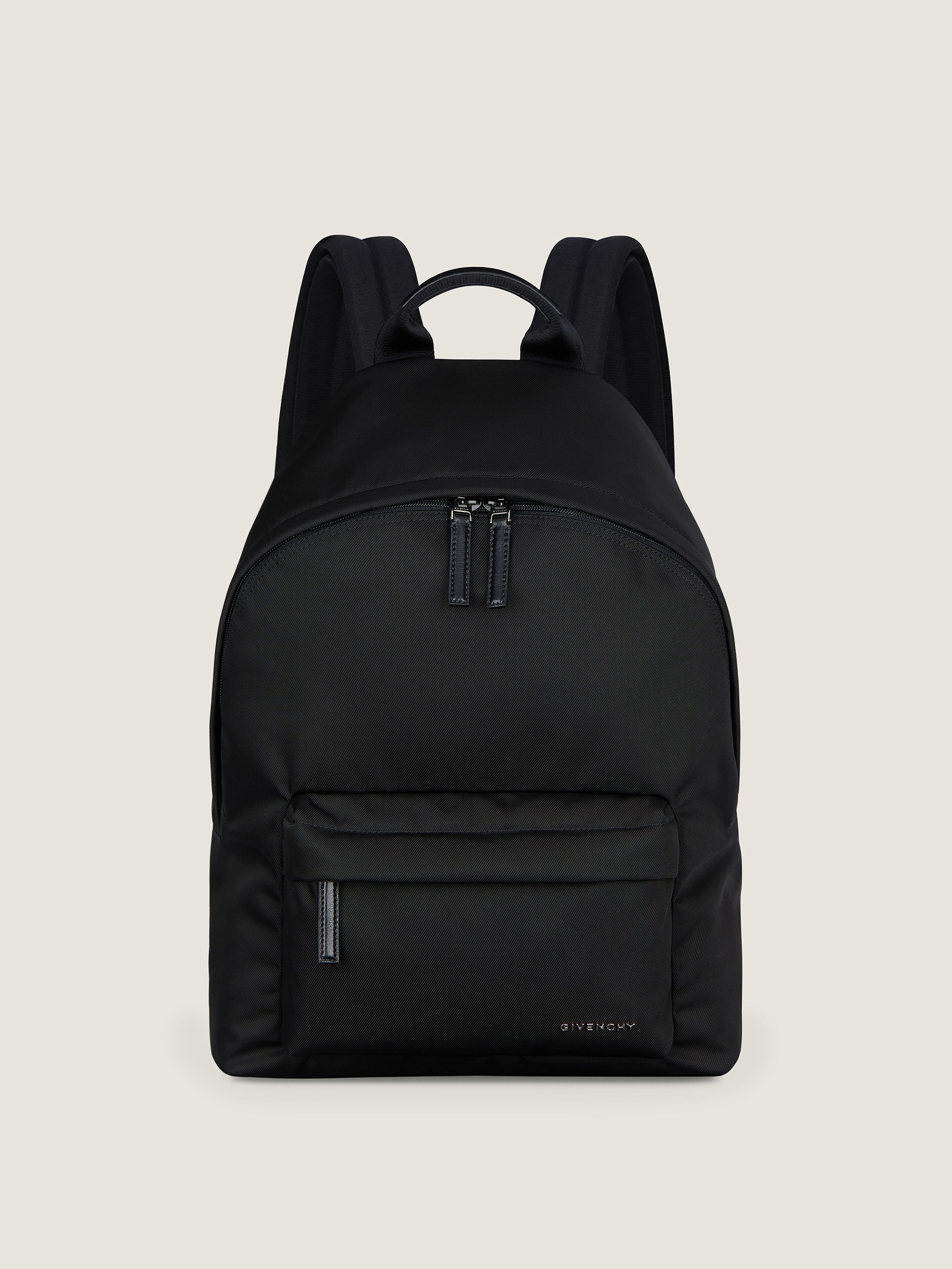 - Backpack in nylon. - Essential U line. - Zipper closure with double leather zipper pull. - Metal GIVENCHY signature on the front. - Comfortable adjustable padded straps. - One zippered pocket on the front. - One flat pocket inside.