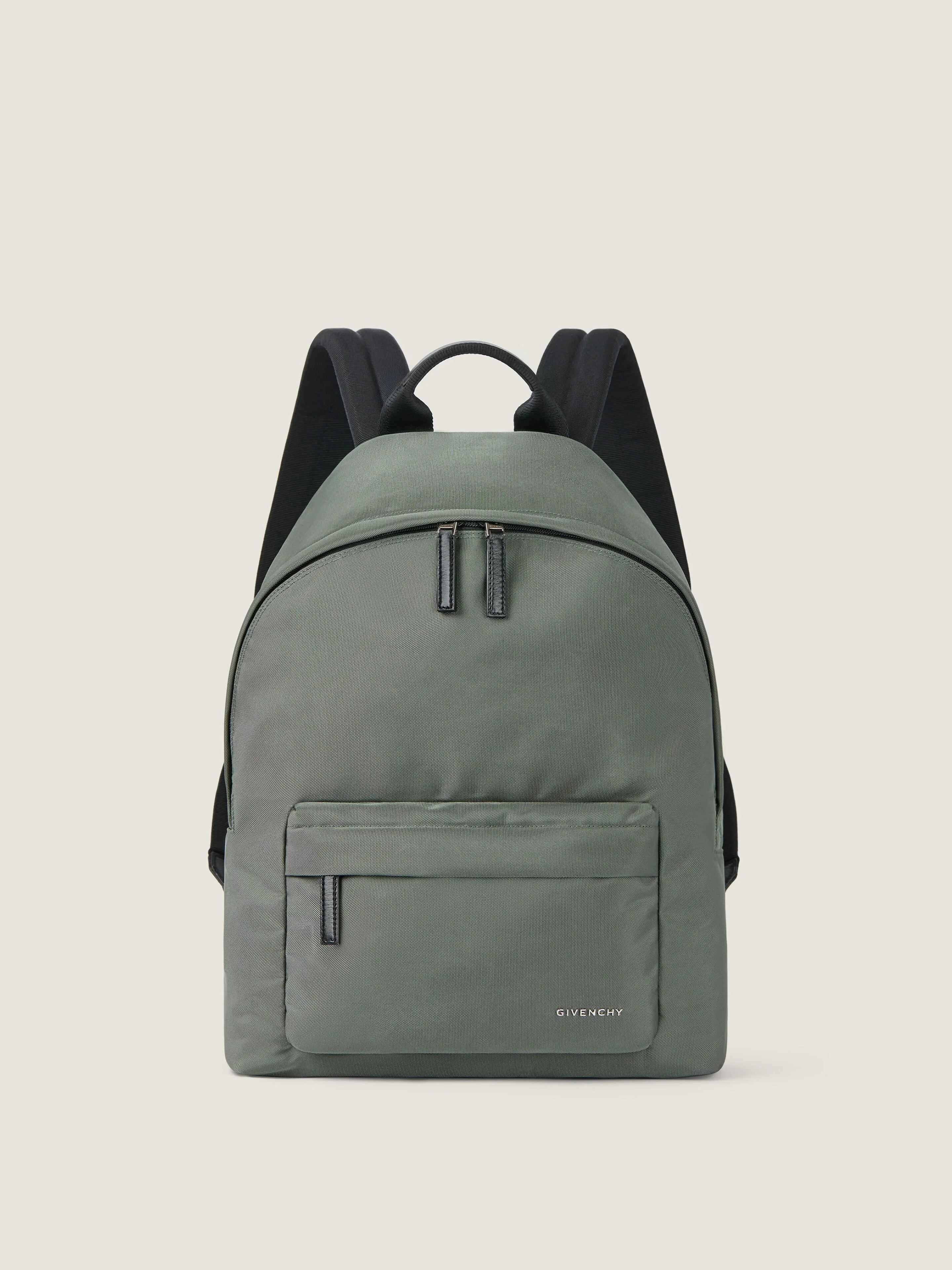 - Backpack in nylon. - Essential U line. - Zipper closure with double leather zipper pull. - Metal GIVENCHY signature on the front. - Comfortable adjustable padded straps. - One zippered pocket on the front. - One flat pocket inside.