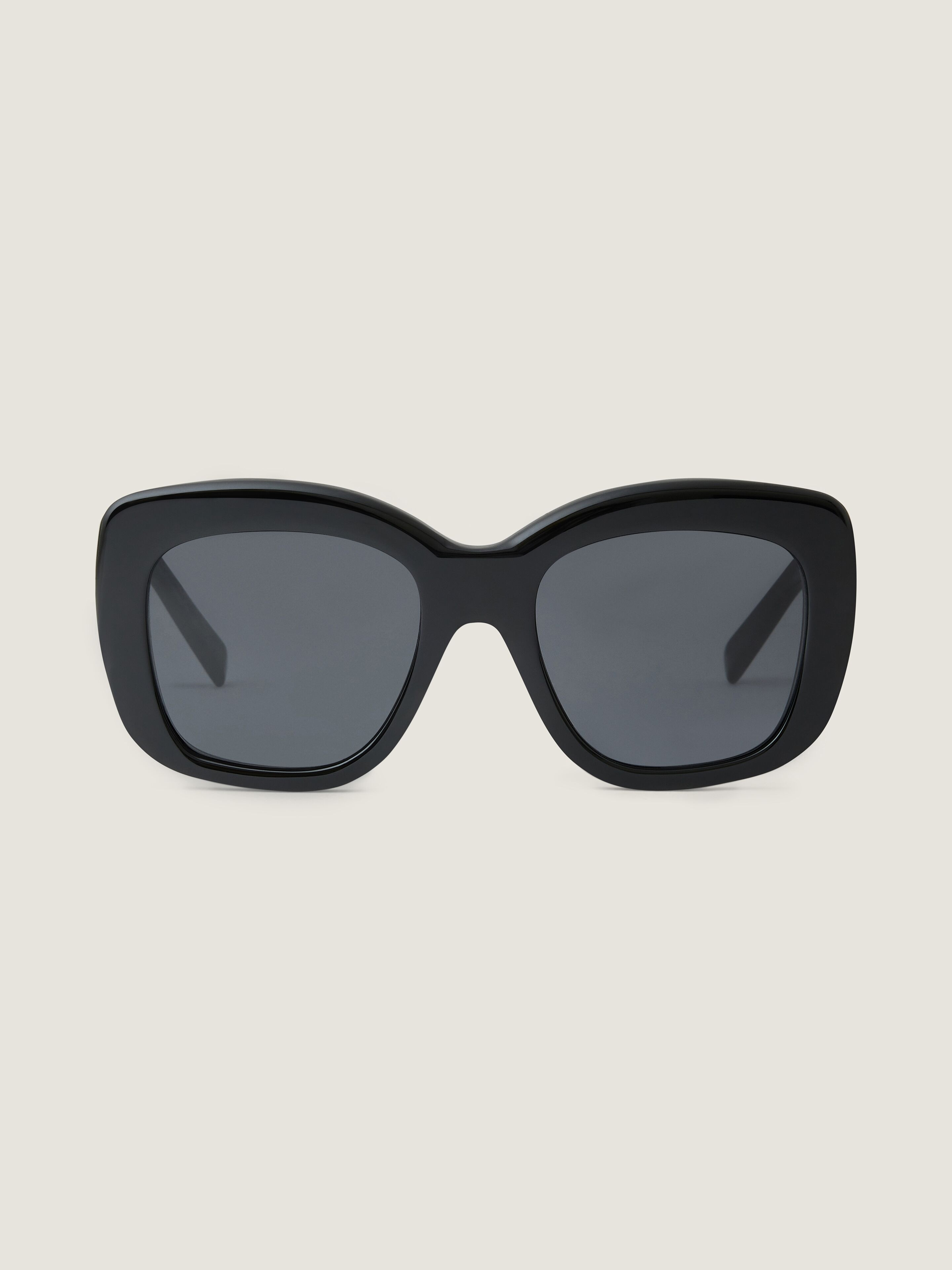 - Sunglasses in acetate. - GIVENCHY Bold line. - Large square shape. - Smoke lenses. - Golden GIVENCHY signature engraved on the temples. - Golden-finish metal detail on the hinges. - 100% UVA/UVB protection. - Weight: 73g. - Model comes in a soft case.