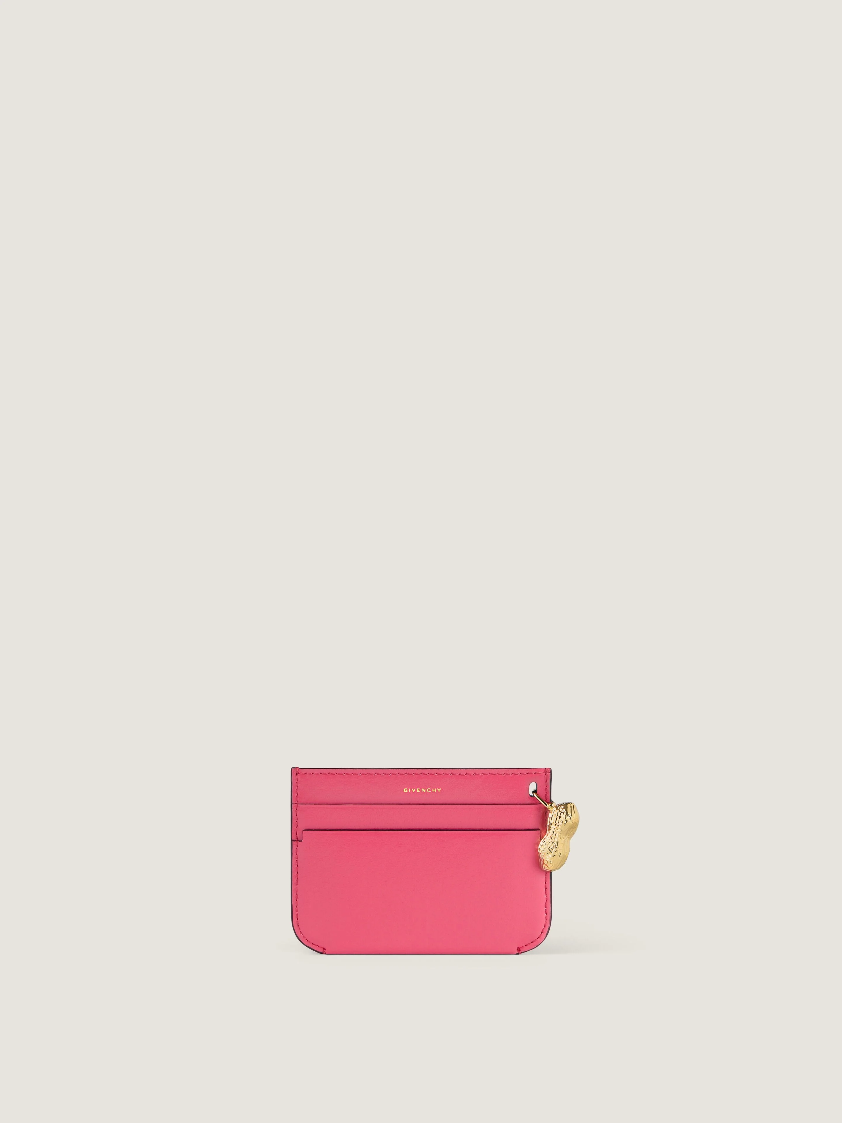 - Card holder in Box calfskin leather. - Lucky harms line. - Golden GIVENCHY signature on the front. - Peanut charm in golden-finish metal on the side. - Five card slots.