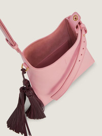 - Mini Hobo bag in luxurious smooth and soft grained shiny leather. - Belted line. - Handle for hand carrying and adjustable strap offering crossbody carrying. - GIVENCHY signature embossed on the front of the bag. - Leather belt adorning the front. - Decorative and removable leather tassel. - Golden-finish metal details. - One main compartment and one flat pocket inside. - Suede lining.