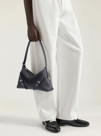 - Mini shoulder bag in denim with contrasting stitchings. - Voyou line. - Zipped closure. - Adjustable shoulder strap offering shoulder carrying. - GIVENCHY signature embroidered on the front of the bag. - GIVENCHY Paris patch on the inside. - GIVENCHY engraved metal buckles. - Silvery-finish metal details. - One main compartment. - Canvas lining.