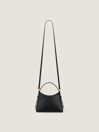 - Nano handbag bag in elevated smooth and shiny calfskin leather. - Voyou line. - Short leather handle. - Thin removable leather strap offering crossbody carrying. - GIVENCHY signature embossed on the front of the bag. - GIVENCHY engraved metal buckles. - Golden-finish metal details. - One main compartment. - Canvas lining.