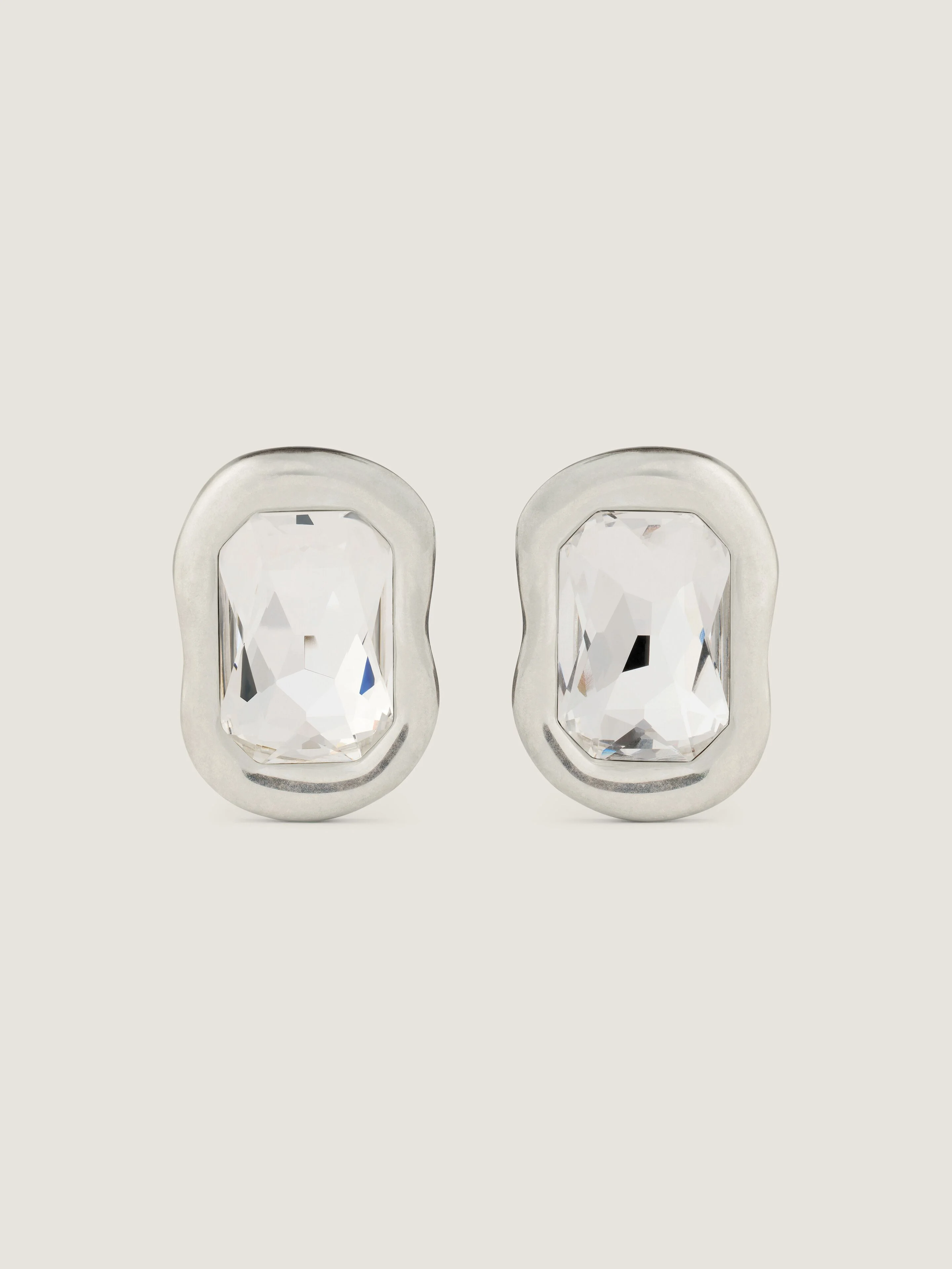 SCULPTURAL CRYSTAL EARRINGS IN METAL AND CRYSTALS