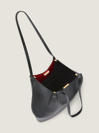 - Small tote bag in soft grained calfskin leather. - Facet line. - Geometric shape. - Magnetic closure. - Leather handles for shoulder carrying. - GIVENCHY signature embossed on the front and GIVENCHY Paris signature on the inside. - Golden-finish metal details. - Hand made edges. - Contrasting crescent shapes on the inside. - One main compartment with one flat pocket inside. - Nappa lining.